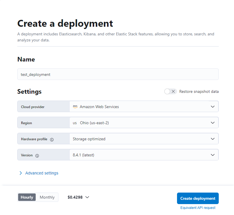 入力後、「Create deployment」を押下することで、Elastic Stackの構築が開始されます。