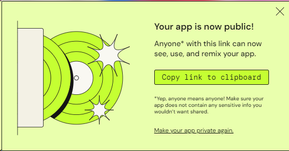 アプリ作成時点ではPrivateに設定されていますが、作成したアプリはPublicに設定して公開することも可能です。