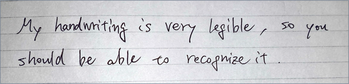 "My handwriting is very legible, so you should be able to recognize it."と書いてあります、念のため。