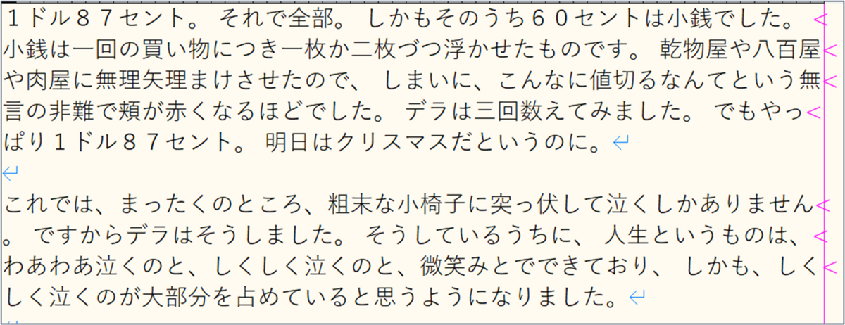 オー・ヘンリーの有名短編小説「賢者の贈り物」の冒頭部分の日本語版キャプチャを読み込ませます。