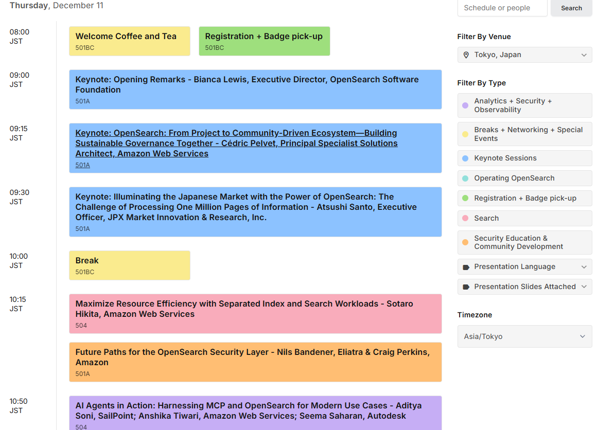 2025年12月11日(木)、東京で開催された OpenSearch Con Japan 2025 に参加してきました。