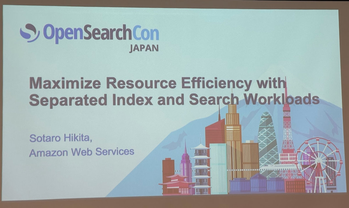 さて、今回私が最も興味深く聴かせていただいたのが、Amazon Web ServicesのSotaro Hikitaさんによる 「Maximize Resource Efficiency with Separated Index and Search Workloads」というセッションです。